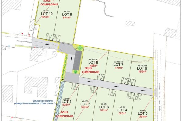 Lotissement situé à LIGNE composé de seulement 10 lots de 459 m² à 671 m² entièrement viabilisé ( eau -Edf -télécom- tout à l’égout )